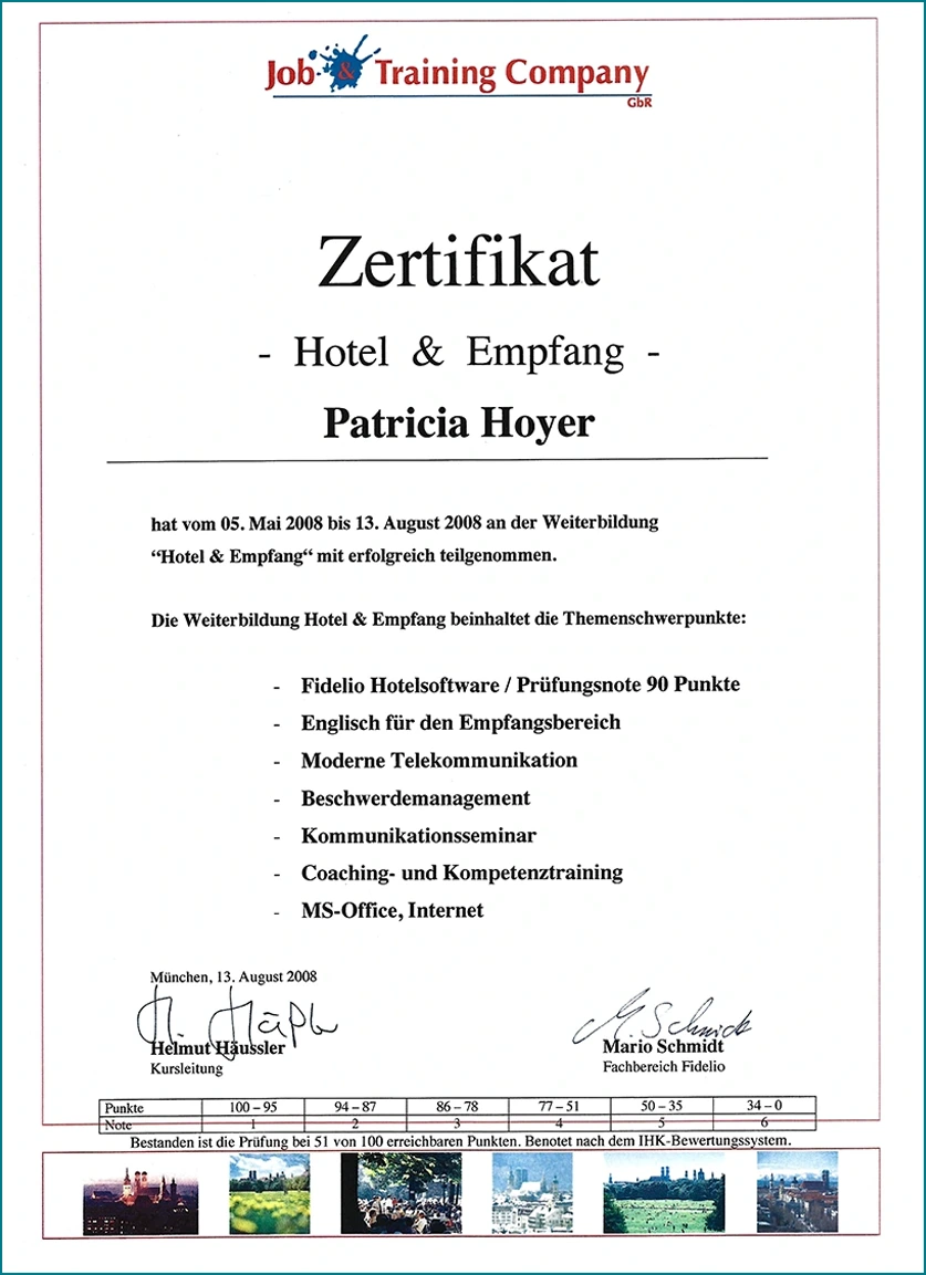 2006: Servicefachkraft im Hotel Nutzkaser in Ramsau bei Berchtesgaden