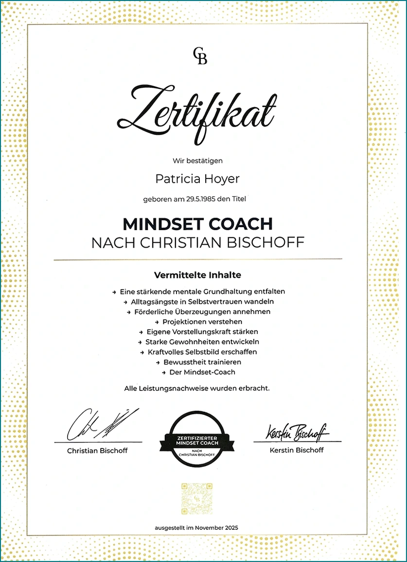 November 2025: Ausbildung zur Mindset Coachin nach Christian Bischoff